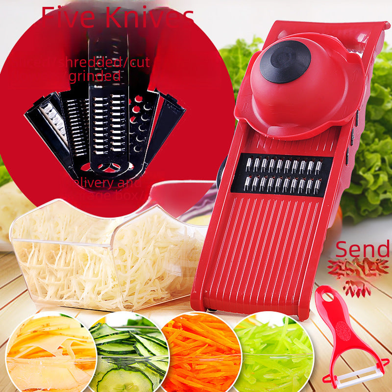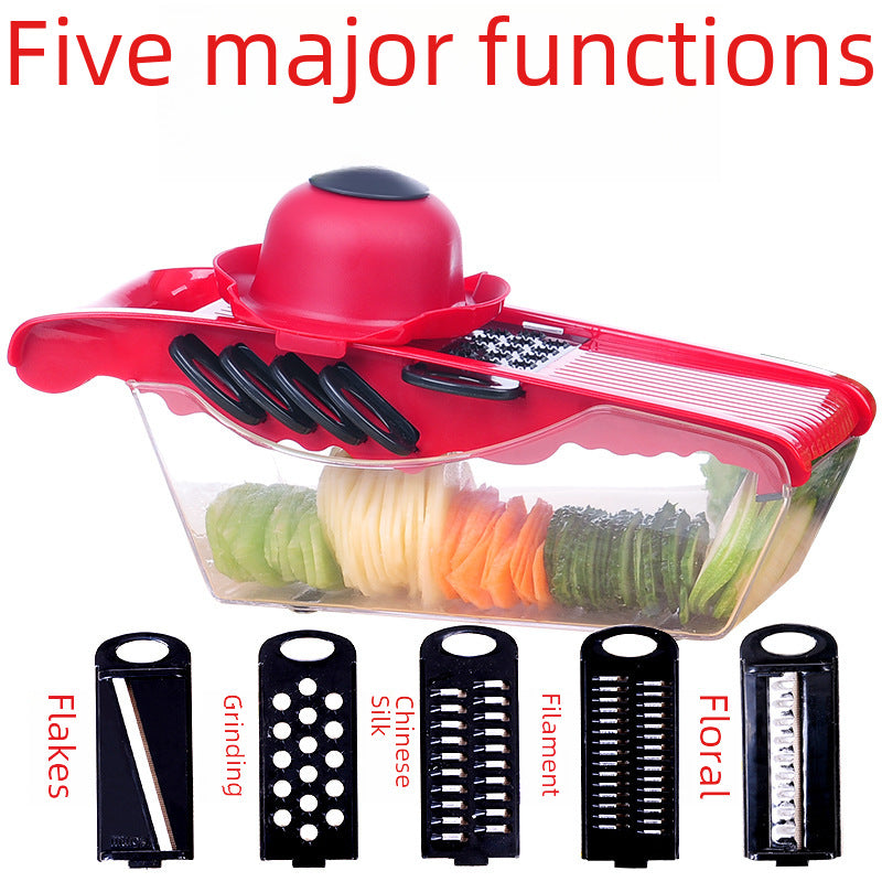 Streamline your meal-prep with the Multifunction Kitchen Slicer - 6 Blades! This professional-grade slicer is designed to eliminate the need for multiple kitchen appliances and make food prep faster and easier. Built with Stainless Steel +ABS and using a specialized 6-blade system, this tool lets you efficiently slice through all kinds of ingredients – from vegetables to cheese. Never worry about leaving a mess or losing the blades again – this slicer comes with its own container for easy storage and organization, keeping everything neat after each use. With its superior performance, control, and durability, the Multifunction Kitchen Slicer is a must-have for any home chef looking to save time in the kitchen and create beautiful dishes with ease.
